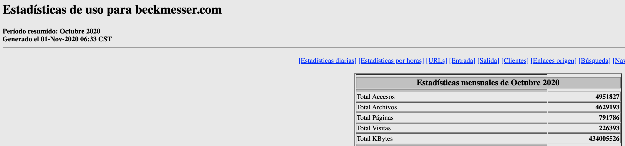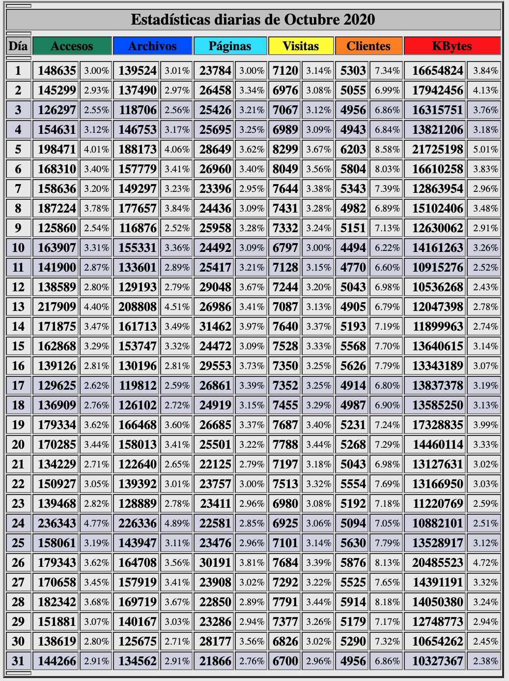 Aquí, no palabras, sino nuestras estadísticas en octubre de 2020 a través de los contadores de nuestro servidor. No hay otra publicación musical en internet que ofrezca abiertamente sus propios contadores.