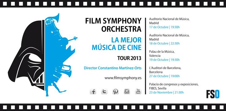 De este modo, FSO arrancará su gira 2013 en el Auditorio Nacional de Madrid, que acogerá dos conciertos los días 17 y 18 de Octubre. El sábado 19 la orquesta visitará el Palau de la Música de Valencia y el 27 de Octubre llegará a L’Auditori de Barcelona. Un mes más tarde, el 23 de Noviembre, Film Symphony Orchestra cerrará su tour en el auditorio FIBES de Sevilla.