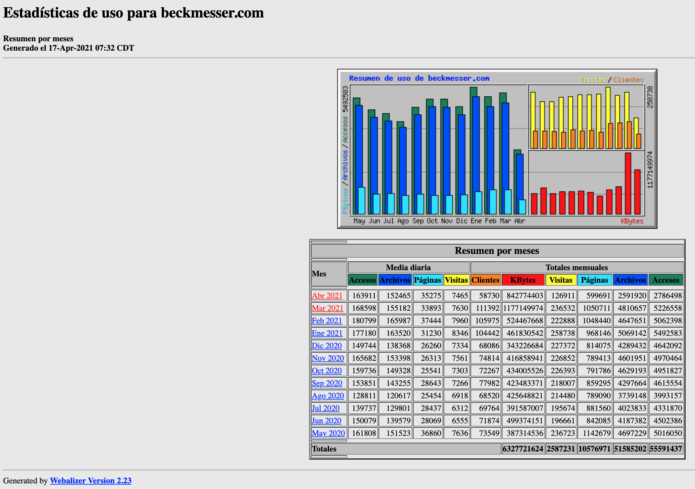 Beckmesser vuelve a superar en marzo 2021 el millón de páginas leídas