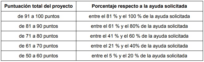 Las cantidades de dotación a cada categoría varían ente los 70.000 y los 120.000 euros. Atenderán a los siguientes porcentajes según los puntos: