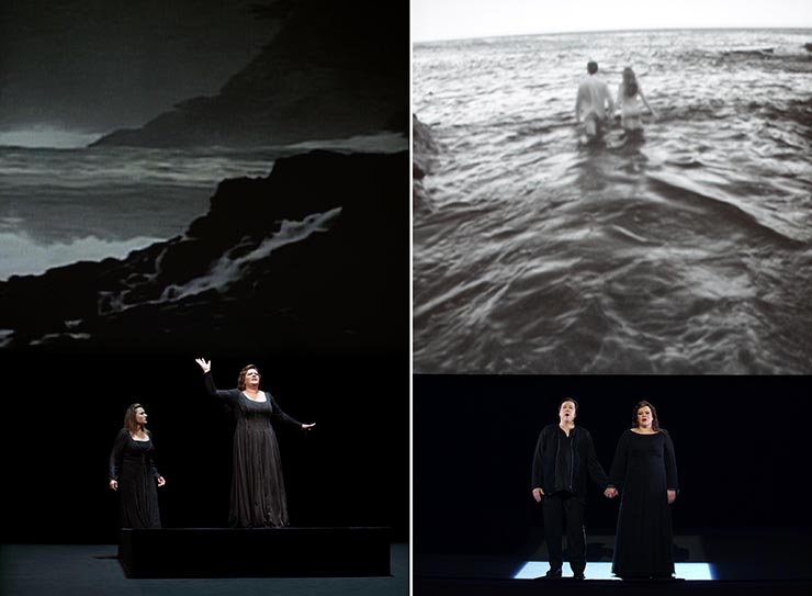 A Warlikowski le gusta poblar toda la escenacon algún contorsionismo, como en la recreación del Hades como una morgue. Movimientos gratuitos que nos privaban de penetrar en el meollo dramáticocuando Alceste y Admeto dialogan viendo la muerte de cerca. La idea central partede un paralelismo con la historia de Lady Di. Antes de empezar se nos obsequia con la proyección de una entrevista de unos diez minutos en los que la soprano, caracterizada como de tal guisa, nos cuenta sus desventuras palaciegas. Habrá más tarde otras proyecciones.
