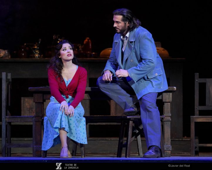 Bieito traslada la acción a un entorno atemporal, sombrío y sin gracia en los años 50, más cercano al desarrollismo que a una sociedad rural cerrada: Laca es un operario, hay por el fondo una canasta de baloncesto, se ven máquinas de coser, aparatos de radio, … La religiosidad está apenas sugerida (la sacristana lleva un gran Cristo al cuello, pero es lo único).