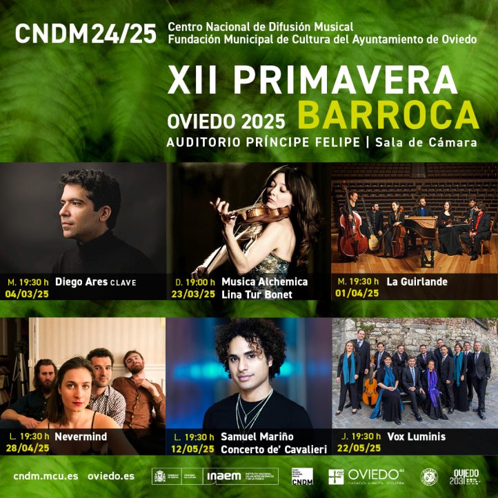 El Centro Nacional de Difusión Musical (CNDM, unidad del INAEM, Ministerio de Cultura) y la Fundación Municipal de Cultura del Ayuntamiento de Oviedo promueven la duodécima edición del ciclo Primavera Barroca, una de las iniciativas culturales referentes del ámbito nacional en la interpretación musical historicista.