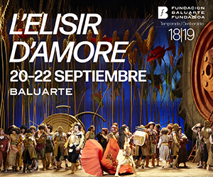Para esta vuelta a lo que podríamos llamar normalidad la obra elegida es L’Elisir d’Amore, de Gaetano Donizetti, que no se había representado todavía en el Baluarte, aunque sí en el Teatro Gayarre, lo que tuvo lugar hace 7 años de la mano de AGAO, con la presencia en el reparto de Leonardo Capalbo, Yolanda Auyanet y Carlos Chausson.