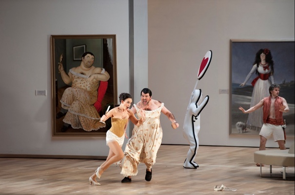 Se trata de la producción del italiano Damiano Michieletto, que es sin duda uno de los prestigiosos directores de escena en los últimos años. Acabamos de ver en Barcelona sus producciones de Cavalleria Rusticana y Payasos y el resultado ha sido bueno. Vuelve Michieletto al Palau de Les Arts tras el buen recuerdo que dejó su producción de La Condenación de Fausto hace un par de años. La producción se estrenó en el año 2015 en Amsterdam, siendo coproducción con las óperas de Copenhague y Australia, habiéndose visto en algunas ocasiones también en el Bolshoi de Moscú. La acción se traslada de la Hostería de Madama Cortese a una Galería de Arte y ha contado siempre con buenas críticas.
