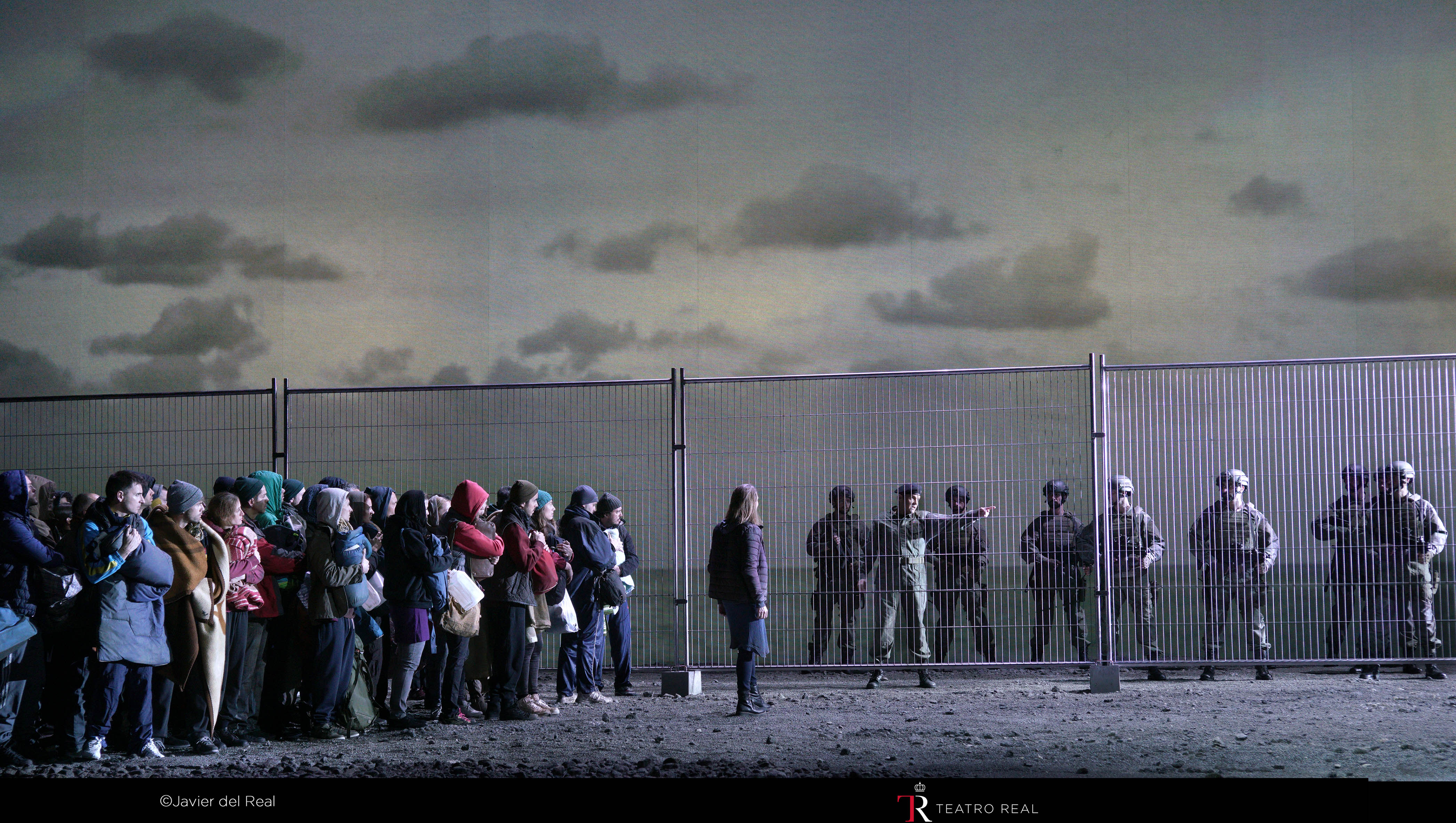 Para la ocasión el Teatro Real nos ha ofrecido una nueva producción del canadiense Robert Carsen, que es una coproducción con la Canadian Opera Company de Toronto, el Teatro dell’Opera de Roma y la Ópera Real Danesa de Copenhague. Confieso que considero a Robert Carsen como uno de los mejores directores de escena de la actualidad y no me ha defraudado tampoco su trabajo en esta ocasión. Se trae la acción a tiempos actuales, con una escenografía simple y atractiva del propio Robert Carsen y Luis F. Carvalho, que se centra en una playa, que sirve en la escena inicial de centro de refugiados troyanos, retirándose las barreras metálicas a continuación. Al fondo hay un paisaje marítimo del que se saca un gran partido con proyecciones, convirtiendo con rapidez la citada playa en una ciudad en ruinas por las guerras. Quizá la parte menos conseguida de la producción es la aparición del monstruo, aunque hay que reconocer que en una actualización de la trama, como la que ocurre aquí, el mencionado monstruo poco tiene que aportar. El vestuario es adecuado, con muchos tintes bélicos, y es obra de Luis F. Carvalho, mientras que la iluminación juega un papel importante, siendo sus responsables el propio Robert Carsen y Peter van Praet, lo que suele ser muy habitual en las producciones del canadiense.