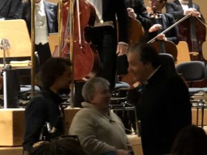 Ramón Paús acaba de presentar su segundo disco para Naxos con cuatro obras para piano tocadas por Eduardo Fernánez, quien estuvo presente en la sala para acompañarle en el estreno mundial del encargo recibido de la ONE. Se trata de un concierto para clarinete bajo y orquesta con el apodo de “De las ciudades ajenas”, escrito en 2015 y dedicado a su hermana, a su esposa y al propio solista Eduardo Raimundo. En sus dos amplios movimientos ha tenido muy en cuenta las características del estupendo clarinetista de la ONE, poseedor de una envidiable homogeneidad de sonido en toda la gama del instrumento, permitiendo que su voz se escuche en todo momento desde el solo inicial en dialogo consigo mismo a pesar de la amplia plantilla orquestal. Bien construida y precisa, deja espacio a la improvisación en dos de sus momentos y muestra espacios líricos e incluso sarcásticos en un viaje que el autor declara realizar por ciudades y estéticas que de algún modo le han interesado, para bien o para mal. La partitura fue recibida con mayor calor del que habitualmente se brinda a los estrenos.