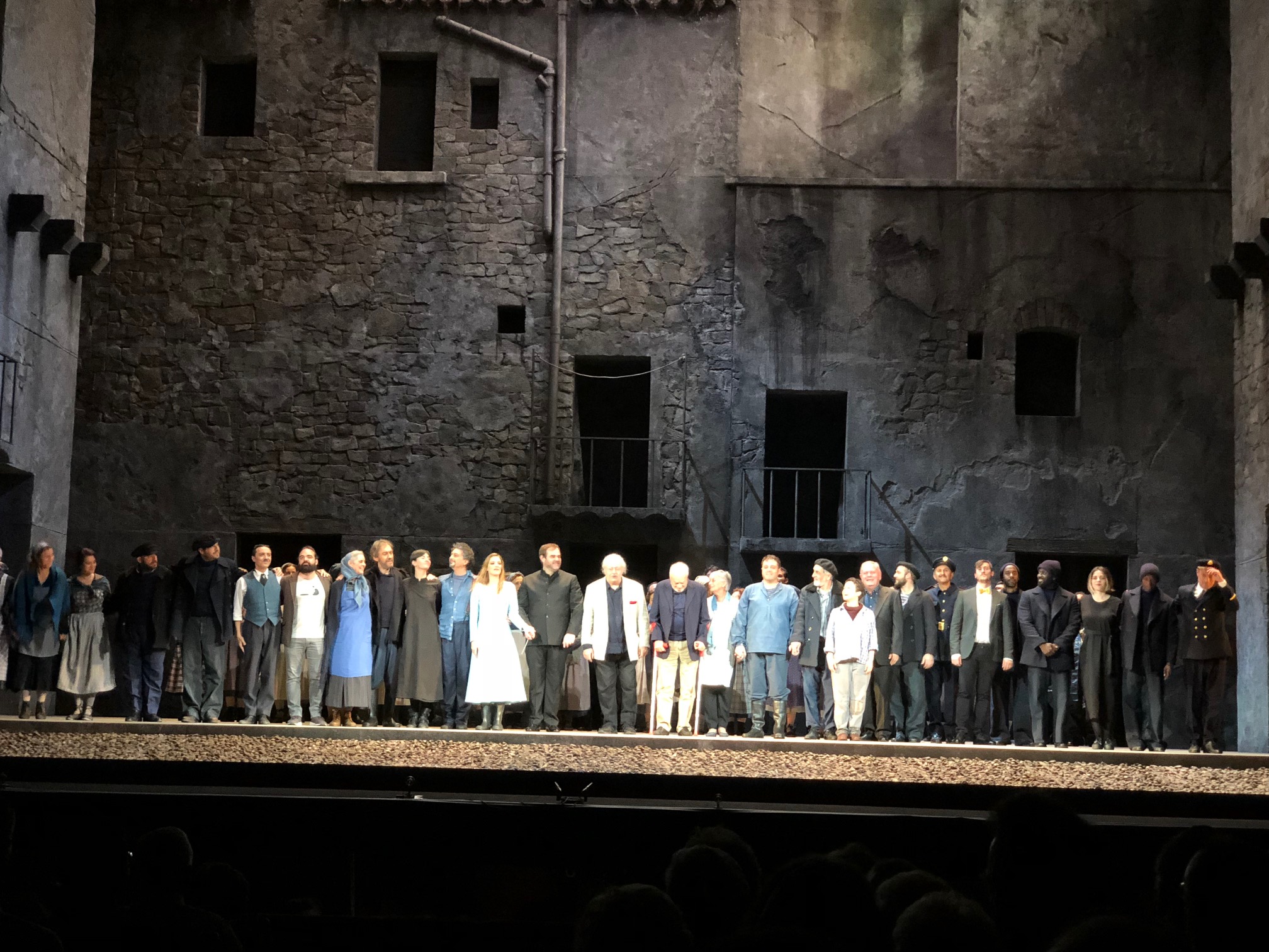 Todo transcurre debajo, encima, delante, detrás o al lado de una gigantesca plataforma móvil que igual es la romana iglesia de Sant’ Andrea della Valle que el Palacio Farnese, que el Castello de Sant’ Angelo o las mazmorras del -en este montaje- desbaronizado Scarpia. El movimiento constante resulta tan cansino y monótono como la dirección de escena, ésta sí plagada de tópicos, lugares comunes, gracietas fuera de lugar y hasta movimientos que son pura copia de lo ya visto. La creación dramática del personaje de Tosca es –hasta en el vestido- una parodia y quizá copia barata de la Tosca diseñada en 1964 por Zeffirelli para el Covent Garden y el regreso a la escena de la Callas. La aburrida y pobre iluminación cenital contribuye al tedio generalizado. El ridículo crucificado que aparece en determinadas escenas parece de la misma escuela pictórica que el “restaurado” Ecce homo de Borja. El vestuario Gianluca Falaschi es un verdadero despropósito, que mezcla sin ton ni son figurines como el de Tosca –cuyo vestido estaba fusilado del de la Callas de Londres, diadema incluida- a los pastoriles atuendos de los niños de la Escolanía. Entre tanta diversidad, la inolvidable pinta de Jokanaan del pobre Angelotti, el desvencijado Scarpia o un Sacristán que más parecía un bajo bufo de Donizetti o al mismísimo Padre Antón de El Gato Montés.