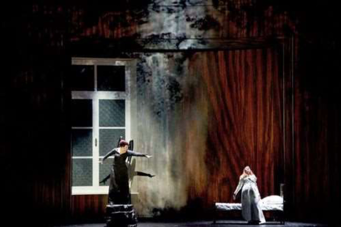 Se trata de una coproducción de la Scala y el Covent Garden, habiendo tenido su estreno hace 6 años en Milán, siendo representada dos años más tarde en Londres. La producción venía precedida de justa fama, ya que había triunfado de manera inequívoca en el paso por las dos ciudades mencionadas. Efectivamente, se trata de un trabajo escénico magnífico por parte de Claus Guth y su equipo. A una producción atractiva a la vista se une una dirección de actores verdaderamente excepcional. Estamos ante uno de los más grandes directores de escena de la actualidad.