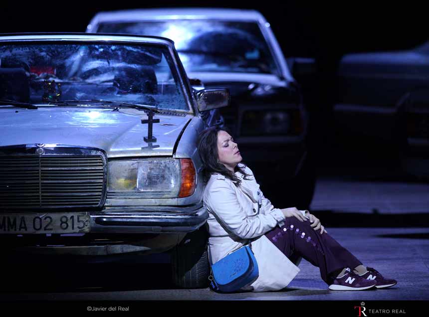 Las dos décadas que han pasado desde su reapertura, en el Teatro Real se ha visto de todo: violaciones, orgías, estupro, consumo de drogas por vía nasal e intravenosa, asesinatos en masa e insultos y vejaciones contra toda clase de símbolos. Pero las circunstancias sociales y políticas en las que se encuentra España actualmente han convertido la función que celebra estos 20 años de funcionamiento del coliseo madrileño en una cuestión delicada. El montaje escogido para la conmemoración es esta Carmen que Calixto Bieito ideó por las mismas fechas en que volvió la programación de ópera al Real y que se ha convertido en el montaje más exitoso de la obra de Bizet en este siglo.