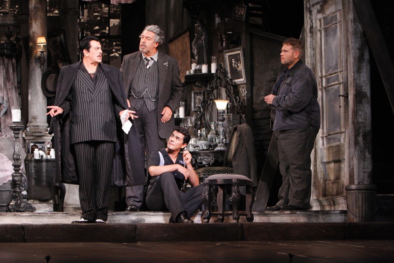Otra cosa ha sido, en esta rara noche, la representación de “Gianni Schicchi”, que Allen decidió situar en la Florencia de los años 50 o 60 del siglo XX, adelantando así la acción unos cuantos centenares de años. Todo sucede en un ático ruinoso desde el que se divisan las cúpulas de la ciudad. Las idas y venidas están bien resueltas, con agilidad y ritmo cinematográfico, que es el que posee en realidad esta obra maestra. Hay detalles originales, como la misma presentación en una pantalla. Lo más sonado es el cierre: Schicchi es acuchillado por Zita, una de las familiares del finado Buoso, lo que en principio no casa muy bien con el texto final. Pero Allen ha visto que en esas líneas se dice: “por esta extravagancia se me ha lanzado al infierno…”