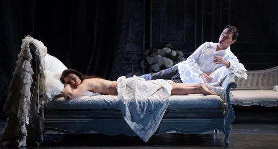 Pero no se trata, claro, solo de amor: también de sexo, y uno de los aciertos puntuales de McVicar es mostrarnos a Violetta desnuda sobre la cama al comienzo del segundo acto. Ella sabe del tema y Alfredo ha sucumbido también a esos encantos. La pena es que esta imagen apenas encuentra desarrollo en el curso posterior de la acción y, en este sentido, resulta difícil comprender cómo, tras el reencuentro tan anhelado por ambos al final del tercer acto, Alfredo irrumpe en la habitación en que su amada se consume de tisis y, sin apenas cruzarse sus ojos, a su espalda, apoya levemente las manos sobre sus hombros mientras una y otro cantan Amato Alfredo y Oh mia Violetta mirando al público, en lugar de arrobarse en la contemplación mutua.