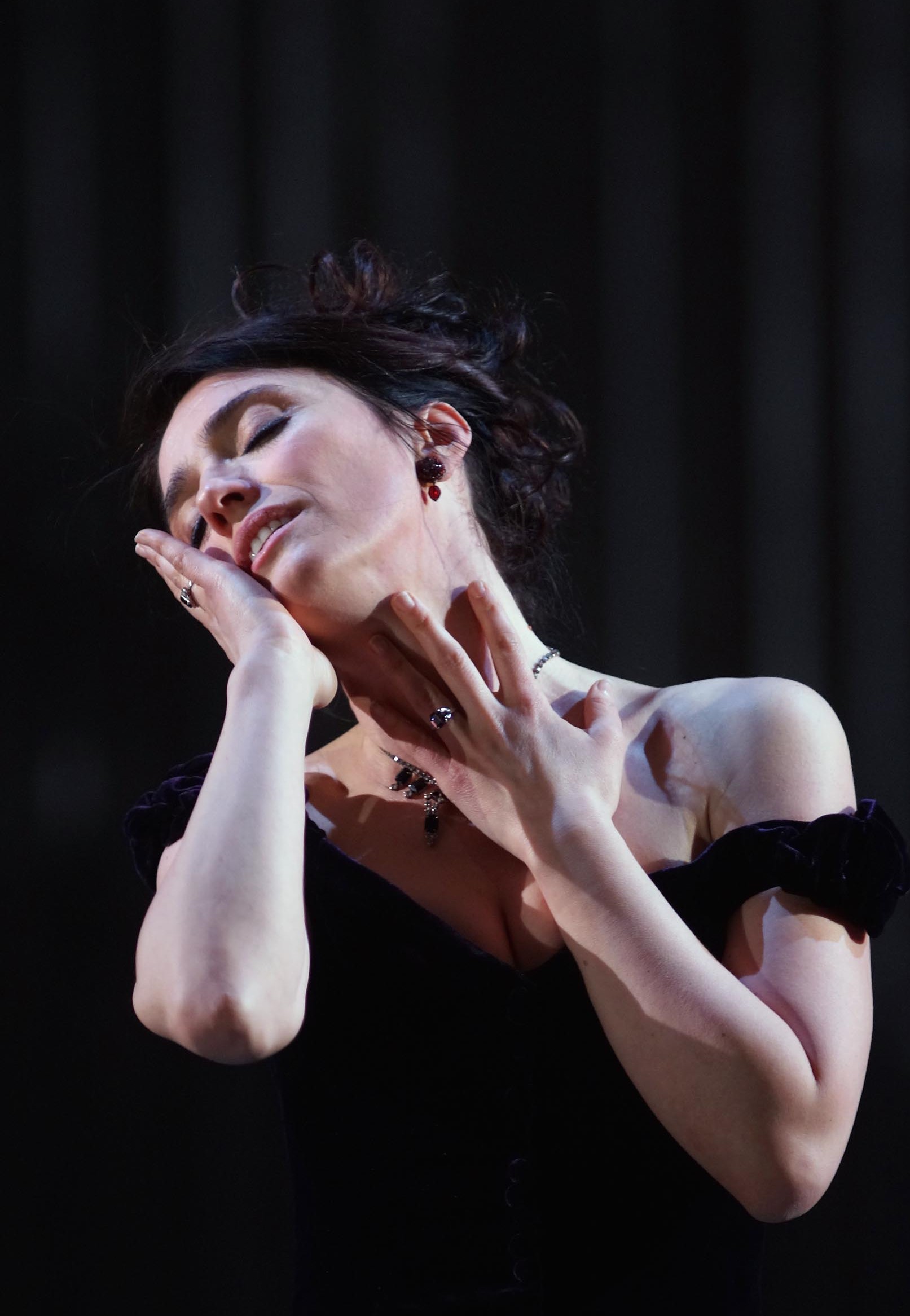 Su vestuario —negro en el primer acto con una pequeña flor roja en el escote, blanco al comienzo y rojo al final del segundo, blanco apagado de nuevo en el tercero— comenta sin palabras esa transformación que ella hizo poco por resaltar y matizar. Musicalmente, se acomodó con habilidad la partitura a sus capacidades y reservó lo mejor de su arsenal para el tercer acto, el que desata la empatía del público y garantiza un triunfo seguro a la protagonista. Salvó con astucia sus insuficiencias en el registro grave y se recreó, a veces en exceso, en las notas agudas en que la voz luce su timbre más atractivo.