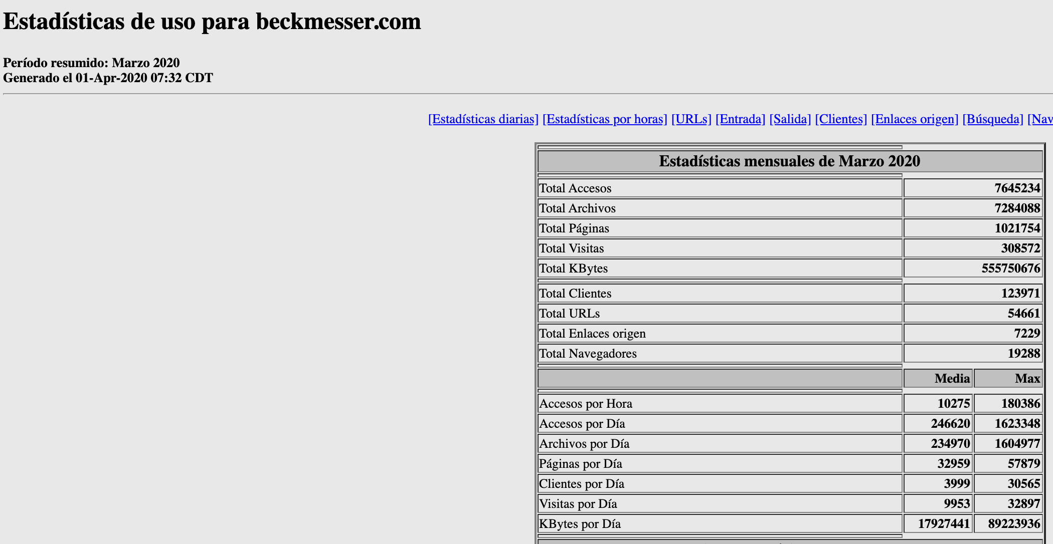 Aquí, no palabras, sino nuestras estadísticas en marzo de 2020 a través de los contadores de nuestro servidor. No hay otra publicación musical en internet que ofrezca abiertamente sus propios contadores.