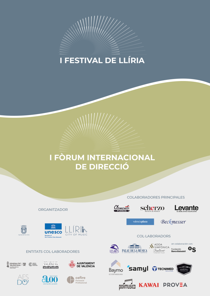 ¿Hay algo más natural y razonable que Llíria, la ciudad de la música, tenga su propio festival? El que nace ahora, con la participación e impulso de Beckmesser.com como “Colaborador principal”, es la cristalización de una pasión y de una manera de vivir y de sentir. El reflejo de una sociedad -la edetana- que vive y disfruta el hecho musical con naturalidad milenaria. La menudencia de presupuesto y de medios en absoluto se refleja en una programación exigente en contenidos e intérpretes, que ha sido posible gracias a la colaboración, amiga y generosa, de todos. La respuesta de la sociedad edetana y sus gentes, sumada a la sensibilidad filántropa de los responsables culturales de las instituciones que participan -Generalitat, Diputació de Alacant y Ajuntament de València-, han hecho posible que este I Festival de Llíria nazca marcado por la excelencia y guiado por la ilusión de instaurar en la ciudad de los músicos una cita anual que sea encuentro y cruce de músicos y melómanos, de público y artistas.