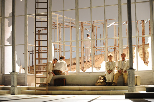 La dirección escénica supongo que ha seguido las instrucciones originales de Wernicke, aunque no se facilita el nombre del responsable de esta reposición, quizá para evitarle sonrojos, ya que el movimiento escénico es ramplón donde los haya. He visto muchas versiones en concierto con más vida en escena que este espectáculo. Hay que reconocer que el ya desaparecido Herbert Wernicke metió un gol por toda la escuadra a la Ópera de Viena con esta producción, que bien harían en retirarla de la circulación.