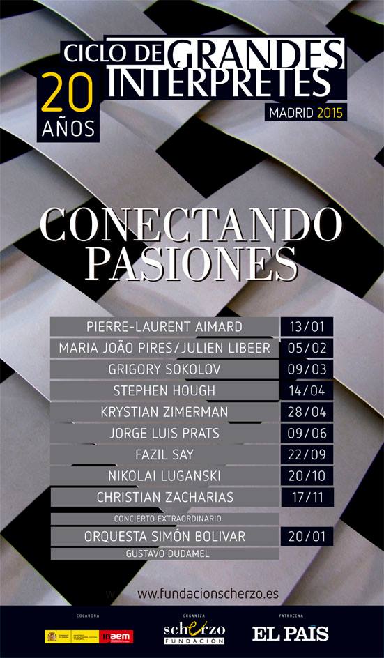 Este concierto estará incluido como extraordinario dentro del XX Ciclo de Grandes Intérpretes que se iniciará el 13 de enero de 2015 con un recital de Pierre Laurent Aimard con el Primer Libro de El clave bien temperado de Johann Sebastian Bach. Este será el primero de nueve conciertos que incluyen a pianistas como Maria João Pires y Julien Libeer (5 de febrero), Grigori Sokolov (9 de marzo), Stephen Hough (14 de abril), Krystian Zimerman (28 de abril), Jorge Luis Prats (9 de junio), Fazil Say (22 de septiembre), Nikolai Lugansky (20 de octubre) y Christian Zacharias (17 de noviembre). Cabe señalar que el pianista hispano-cubano Jorge Luis Prats, que tanto impresionó al público en su presentación en el Ciclo, interpretará en su recital una de las obras cumbres de la música española para piano: Iberia de Albéniz. Tanto Stephen Hough como Fazil Say son invitados por vez primera al Ciclo.