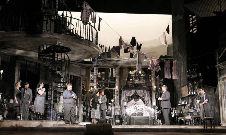 Prueba conseguida, sobre todo porque, como el propio director explica, se hace sin cambiar el libreto, dejando intacta (sic) la partitura (esto es más discutible en una ópera con varias versiones incluyendo la que se ha pergeñado en El Escorial) y todo se refiere a través de la interpretación teatral.