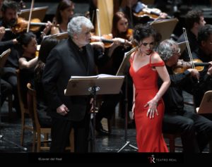 Hacerla en versión concierto es una limitación que se compensaba con la presencia de Plácido Domingo, en su actual tesitura de barítono a la que el personaje va bien, encarnando al monje obsesionado con la conversa ex cortesana. Domingo es una institución de la historia del canto y siempre levanta expectación y seduce al público. Además, se contaba con la presencia de una soprano triunfadora el año pasado en el Real, la albanesa Ermonela Jaho que volvió a arrasar en este teatro. Es una excelente voz y un enorme talento dramático que transmite emoción y a veces un desbordante desgarro. Ella y Domingo se llevaron las grandes ovaciones de la noche, pero hay que señalar que el resto del reparto era muy adecuado.