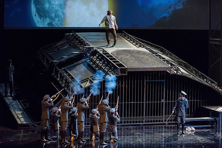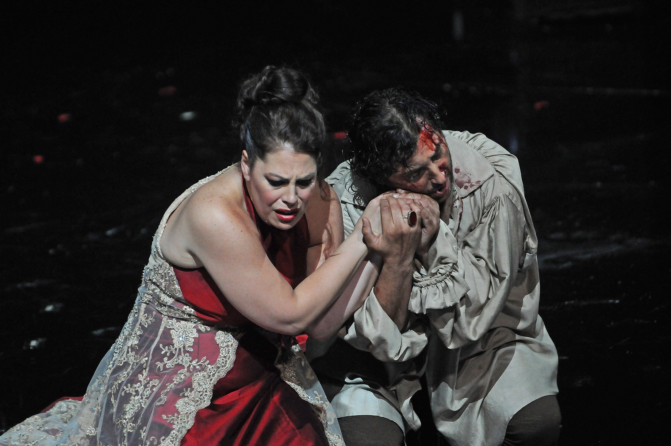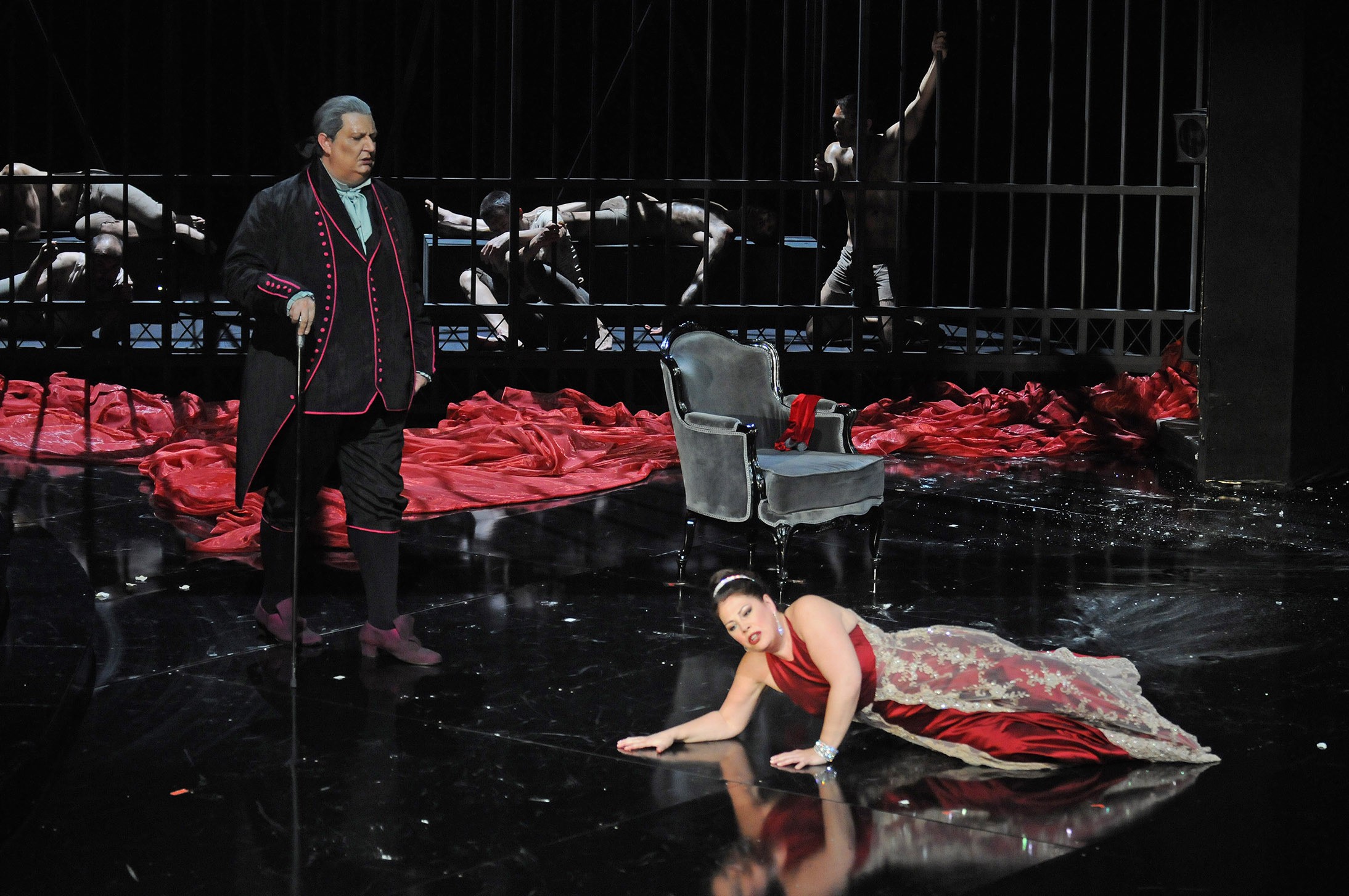 tras dar muerte a Scarpia, de quien se despide con un beso. Lo más confuso viene en el último acto, con el cambio de vestido de Tosca en la prisión y los repetidos movimientos de los protagonistas subiendo y bajando al techo del edificio. En resumen, una producción escénica que no molesta ni aporta excesivo interés.