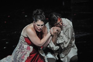 Sondra Radvanovsky fue Tosca y hay que decir que estamos ante una de las voces de soprano más importantes del panorama actual. Su timbre oscuro resulta muy atractivo y el tamaño de su voz no cede la primacía a ninguna de sus colegas. Su centro es muy importante, sin que nada haya perdido de su facilidad en las notas altas. Únicamente, he encontrado que sus graves son ahora más débiles que antes, lo que se notó especialmente en el tercer acto en los pasajes casi recitados que siguen al fusilamiento de Cavaradossi, en el que prácticamente resultaba inaudible. En su interpretación eché en falta más matices, resultando una Tosca un tanto superficial, aunque hay que decir