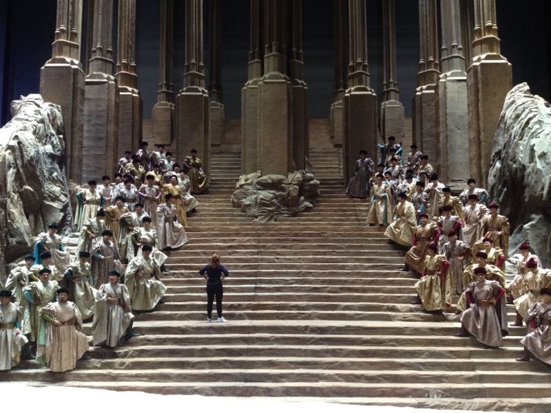 He aquí en primicia un par de fotos del “Lohengrin” que se ensaya en la Ópera de Pekin. ¿Cómo será el de la Scala? Seguro que bien diferente.