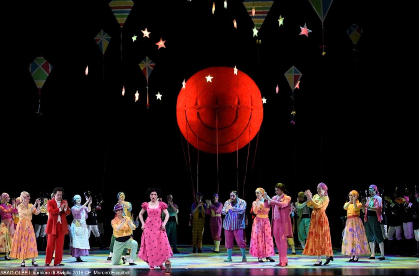 Hacer una producción del Barbero no es tarea fácil, ya que las obras de gran repertorio tienen la gran dificultad de tener que moverse entre lo ya visto y lo novedoso, que a veces desata reacciones airadas, y ya se sabe que no es fácil que llueva a gusto de todos. En esta ocasión Sagi se mueve entre dos aguas y consigue un resultado aceptable, aunque no excepcional. La producción se caracteriza por el constante movimiento de los decorados, manejados por “artistas-tramoyistas”, cuyos movimientos van cambiando las ambientaciones. Los decorados son siempre en tonos blancos o grises y no presentan demasiada originalidad ni atractivo, debiéndose, como es tradicional con Sagi, a Llorenç Corbella. El vestuario también anda entre blancos y negros con algunos tintes bufos y no resulta demasiado conseguido hasta la escena final, en la que Renata Schussheim apuesta por colores vivos, que componen la escena más conseguida de toda la ópera. Correcta la iluminación de Eduardo Bravo. Lo más conseguido de la producción surge a partir de la escena de la tormenta, ganado a partir de ahí en movimiento y colorido para terminar en una fiesta. Sigo considerando que hay exceso de movimiento en escena por parte de un modesto cuerpo de baile, lo que resulta en muchos casos contraproducente. Aunque el programa no hacía referencia a ello, supongo que la dirección escénica de esta reposición la llevó adelante Javier Ulacia, toda vez que Emilio Sagi no apareció en los saludos finales.