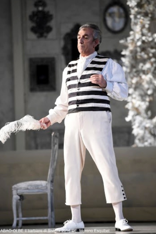 Al frente de la dirección musical estuvo siempre anunciado Ottavio Dantone, cuya presencia me resultaba un tanto sorprendente, ya que es bien sabido que el director italiano ha hecho del barroco su auténtica especialidad. El caso es que Ottavio Dantone canceló su participación hace unas semanas, siendo sustituido por José Miguel Pérez Sierra, que se está convirtiendo en uno de los directores más asiduos en la temporada de Bilbao. El refranero español dice que de víspera se conoce el día y lo mismo podría decirse del resultado de una ópera, cuando ésta tiene una obertura, como es el caso de Il Barbiere di Siviglia. Normalmente, la interpretación de la obertura nos pone en la pista de lo que va a ser el resultado musical de la representación. No diré sino que la lectura que hizo José Miguel Pérez Sierra de la citada obertura fue de una languidez desesperante. No hubo gracia por ningún sitio. A partir de ahí su lectura resultó muy plana y rutinaria, especialmente durante el largo primer acto. Rossini es ligereza y chispa y de eso hubo muy poco. Las cosas mejoraron en el segundo acto, pero para entonces el aburrimiento se había apoderado de quien esto escribe. Actuación nada más que correcta por parte de la Orquesta Sinfónica de Navarra. El Coro de Ópera de Bilbao tampoco elevó el nivel musical de la noche, quedando muy descolorido durante el Cessa di più resistere, que parecía poco ensayado.