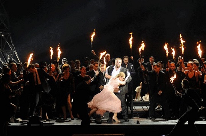 Al frente de la dirección estaba nuestro bien conocido Omer Meir Wellber, que está desarrollando una buena carrera en Alemania como director. Tengo que decir que su actuación no me ha convencido. Para muchos ha podido resultar brillante en los tutti, pero yo he encontrado su lectura superficial y excesivamente ruidosa. Más brillante y mucho más profunda fue la lectura de Nicola Luisotti en Valencia. Buena la prestación de la Bayerische Staatsorchester. A destacar la actuación del Coro de la Bayerische Staatsoper en una ópera exigente para ellos como pocas.