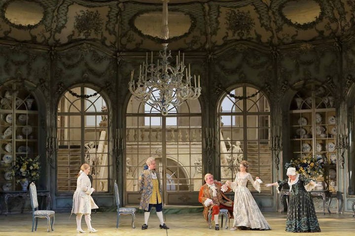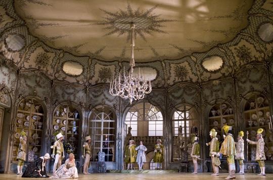 La producción de Munich lleva la firma de Otto Schenk, lo que no es sino auténtica garantía de belleza escénica, aparte de buen gusto. Esta producción se estrenó en este teatro en 1972, es decir hace ya 44 años. Desde entonces sus reposiciones nunca han faltado a la cita en Munich, como tampoco lo han hecho las otras dos producciones que hizo Otto Schenk de Rosenkavalier para Viena y Dusseldorf, que son muy similares y siguen gozando de buena salud, a juzgar por sus continuas reposiciones escénicas.
