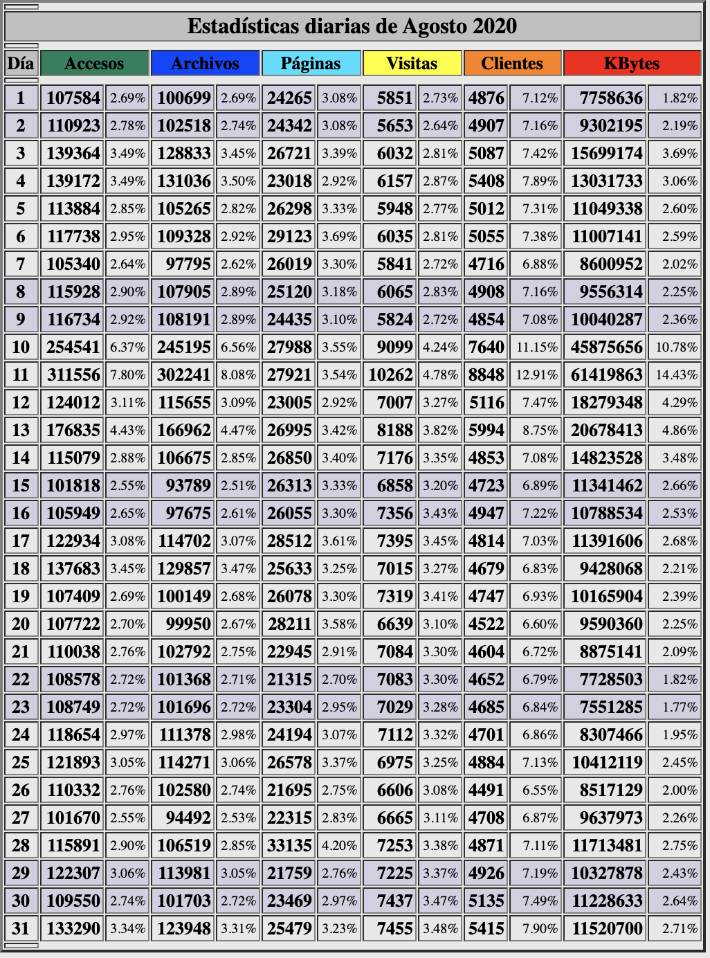 Aquí, no palabras, sino nuestras estadísticas en agosto de 2020 a través de los contadores de nuestro servidor. No hay otra publicación musical en internet que ofrezca abiertamente sus propios contadores.