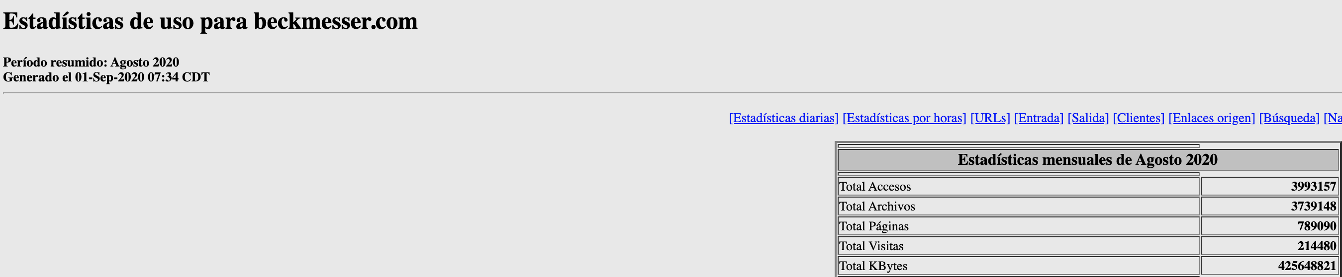 Beckmesser.com es además la única revista web musical que publica abiertamente sus contadores. Su difusión supera a la del resto de la prensa musical en papel o web. Beckmesser obtuvo 214.480 visitas durante el mes de agosto con 789.090 páginas leídas.