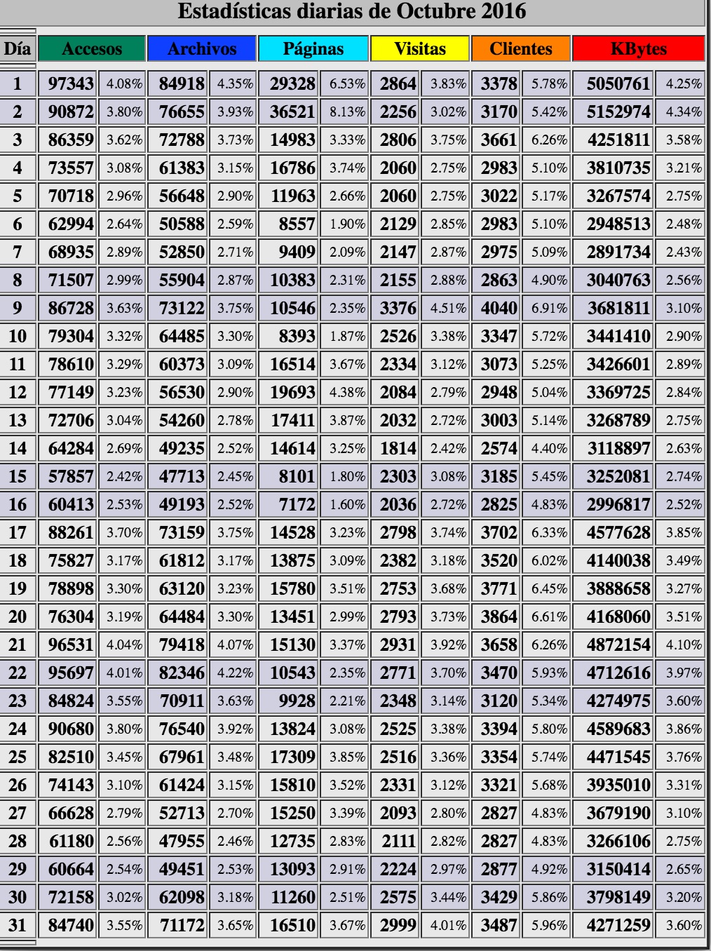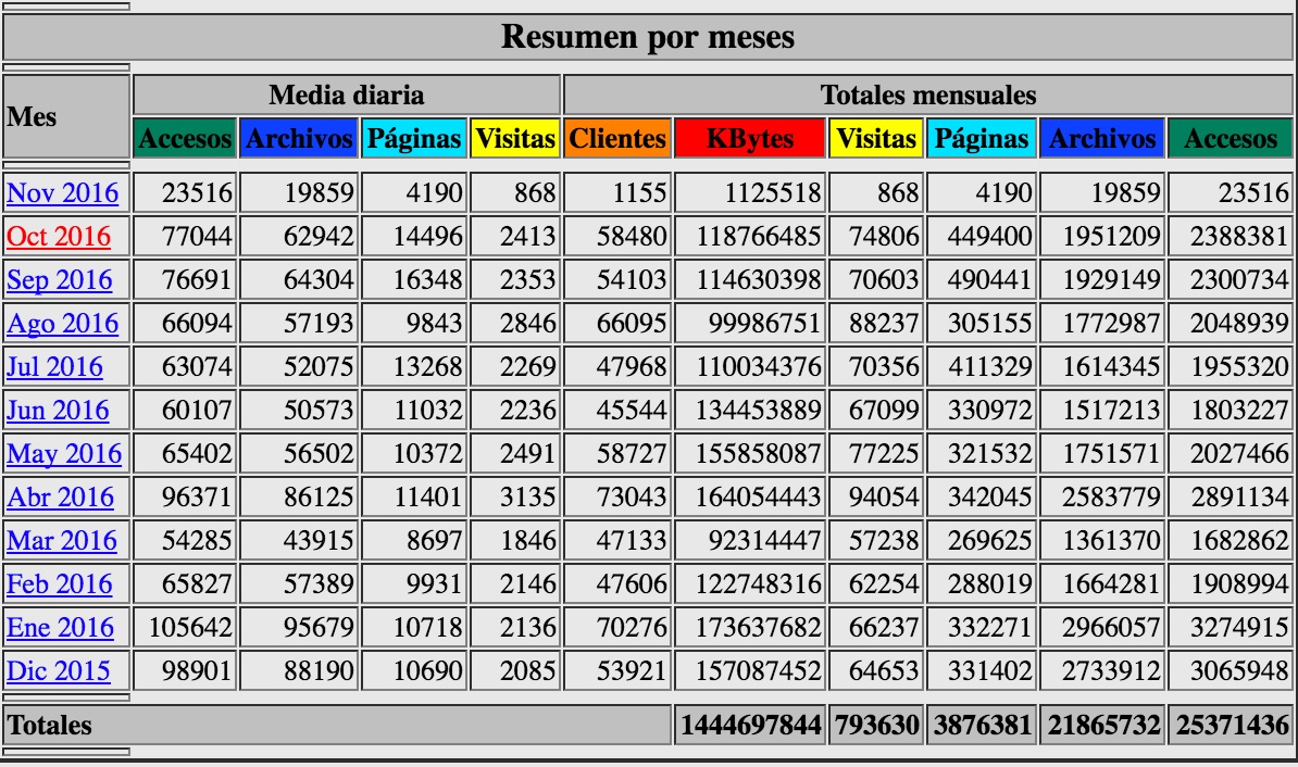 Nuestras estadísticas de octubre 2016