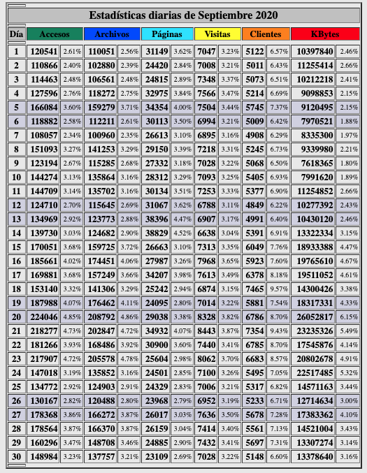 Nuestras estadísticas de septiembre de 2020