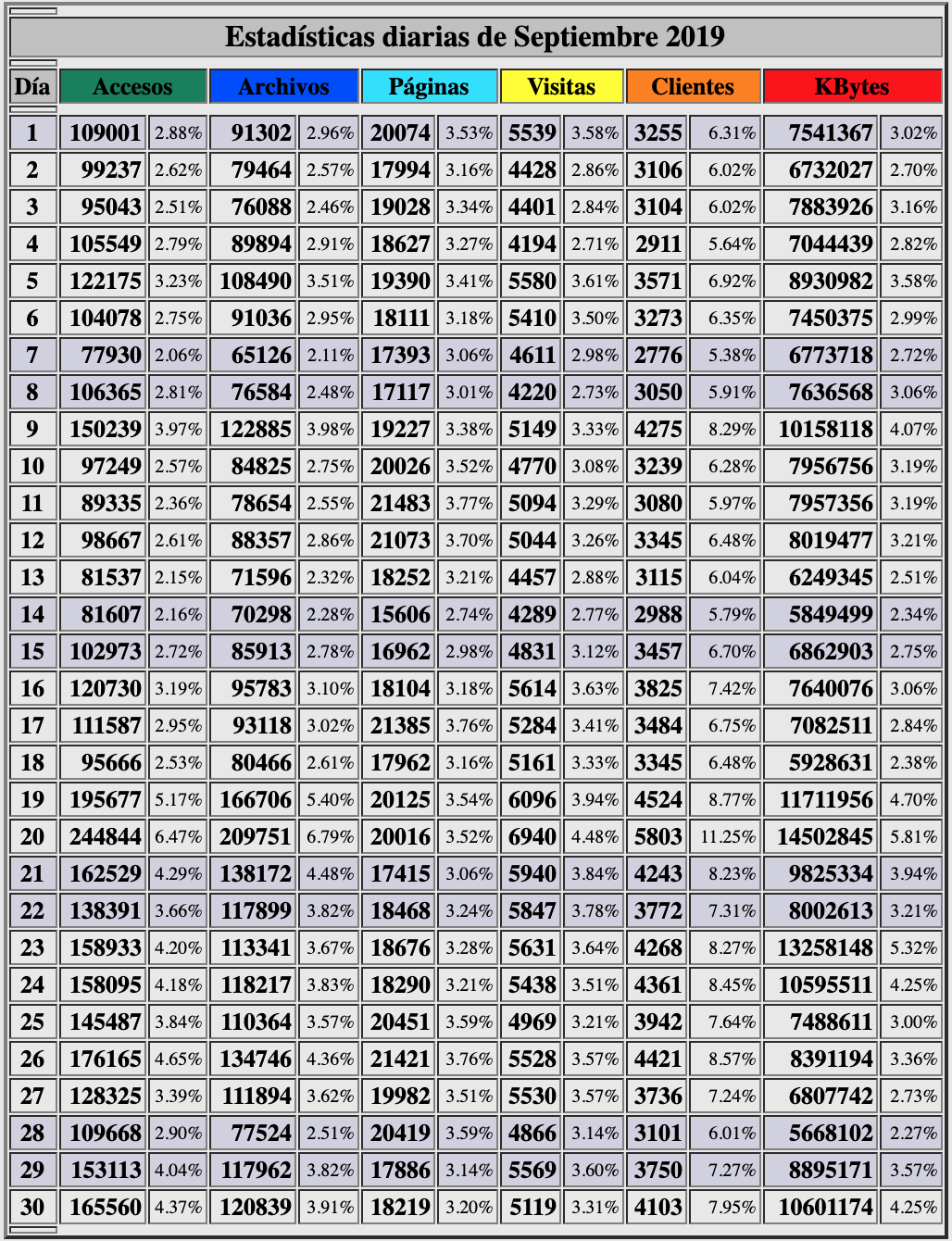 Como parece que hay que pedir perdón por todo, lo pedimos porque no hemos sido capaces de superar en septiembre nuestro record de 6.100 visitas diarias en agosto. Sin embargo, con 5.158, estamos muy, muy por encima de nuestra competencia, ya sea en papel o web. Seguimos siendo la única que publica sus contadores de difusión.