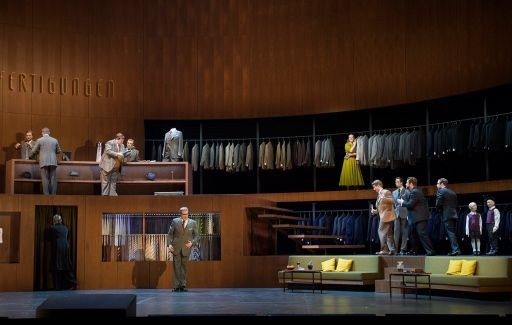 Si la producción chirría por todos los lados, hay que decir que resulta atractiva a la vista, con una escenografía de Muriel Gerstner, que también se encarga del vestuario. La tienda de ropas no puede ser más atractiva, ofrecida en dos niveles unidos por una escalera. Cuenta también con una brillante iluminación por parte de Olaf Freese. Lo que destaca por encima de todo es el impresionante trabajo de dirección de escena por parte de Claus Guth. Por absurda que pueda parecer la concepción escénica, la dirección de actores es espectacular. Mi vecino de localidad me decía que también se puede hacer una dirección escénica excepcional en Blancanieves y los 7 Enanitos, pero que en este caso estábamos en Salomé. No le faltaba razón.