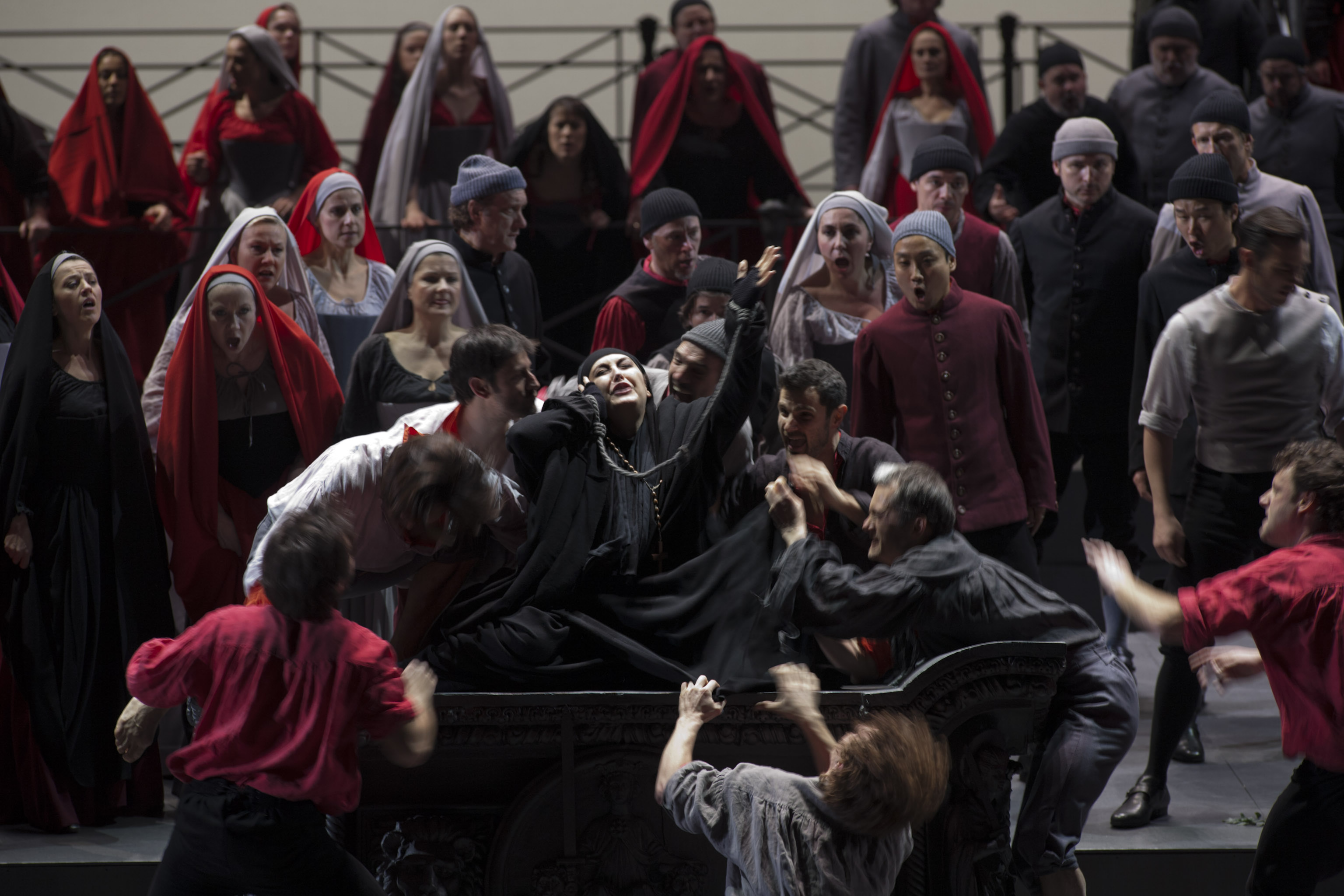 María José Montiel ha cosechado un enorme éxito en la Ópera de la Bastilla parisina con el personaje de La Ciega, obteniendo más aclamaciones en los larguísimos saludos finales que el resto de los intérpretes: Violeta Urmana, Marcelo Álvarez y Claudio Sgura. Las representaciones están dirigidas por Daniel Orén y cuentan con producción de Pier Luigi Pizzi.